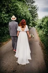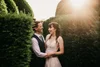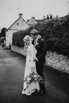 Page boy cuddling bride on her wedding day,Cotswolds, Gloucestershire
